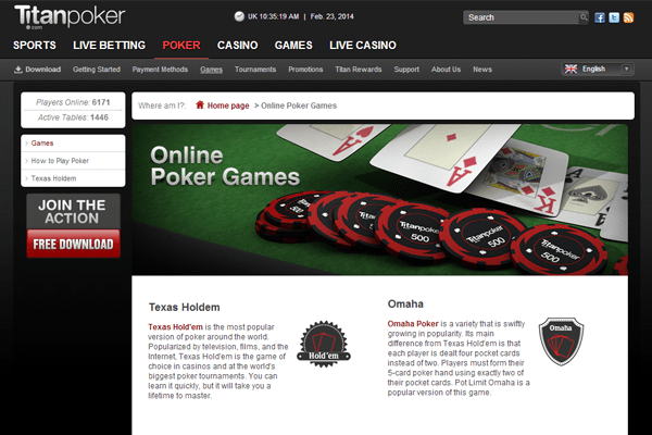 Следующий популярный европейский рум TitanPoker, входящий в сеть iPoker, которая славится регулярным притоком слабых покеристов. Данная покерная комната зарекомендовала себя с самой лучшей стороны. Она не только надежна и честна перед игроками, но и предлагает им высокий уровень сервиса. TitanPoker получил награду «Лучшая служба поддержки в онлайн-покере» от журнала Gambling Online.
