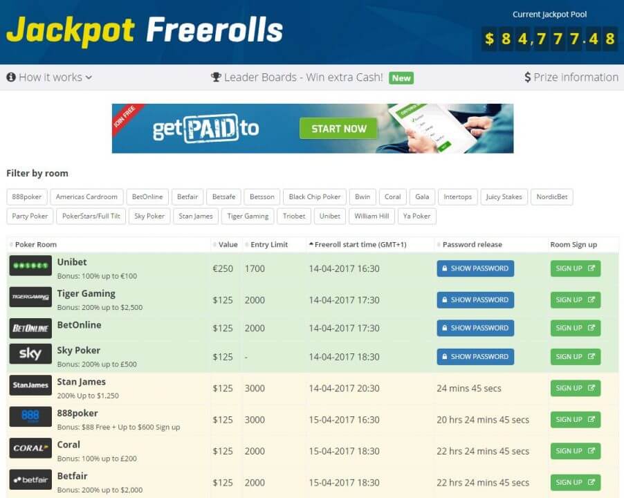 Чтобы получить пароль на Jackpot Freerolls 250, 95k или любой другой турнир от такого сообщества, нужно для начала стать его участником. Для этого потребуется пройти регистрацию. После чего вам станут доступны пароли на Джекпот Фриролл. Но обратите внимание, что они выкладываются за час до начала турнира.
