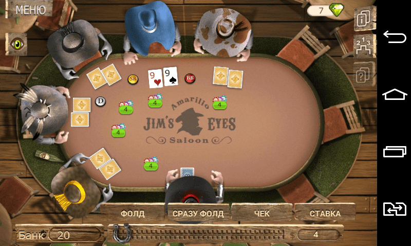 Governor of Poker – одно из самых популярных приложений, которое представлено в виде флэш-игры. Его загружаются себе на устройства Андроид как новички в мире покера, так и опытные игроки. В чем же секрет успеха Governor of Poker? В первую очередь он кроется в оригинальной сюжетной линии. Согласно ей, игроку предстоит выступить в качестве персонажа – неунывающего ковбоя, который отправляется на Дикий Запад с целью стать лучшим игроком в покере и заодно получить должность губернатора.