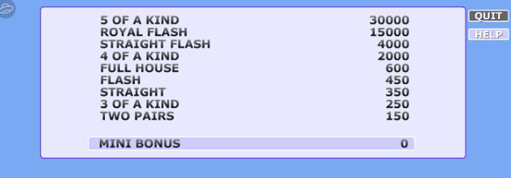Если же сразу удалось собрать хорошую комбинацию, то тогда можно жать вновь на кнопку Deal, чтобы был произведен по ней расчет. При этом обратите внимание, что выигрыши начисляются здесь комбинации от двух Пар и выше. А значит, если будет собрано сочетание Старшая карта или одинарная Пара, ваша ставка «сгорит».