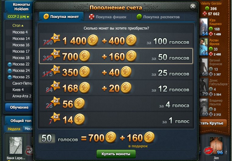 Продажа фишек в World Poker Club – обычное дело. Чтобы пользователь мог приобрести обычную или премиальную валюту, ему необходимо перейти в личный кабинет и выбрать раздел «Пополнение счета». После чего перейдите в нужную вам вкладку – «Покупка монет» или «Покупка обычной валюты». Теперь останется лишь определиться с тем, сколько именно игровых денег вы желаете купить, а потом оплатить счет.