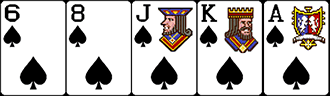 И последняя комбинация High card, что в переводе означает Старшая карта. Это значит, что в ней карты идут в случайном порядке и не образуют ни одну из вышеперечисленных комбинаций.