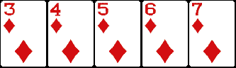 Straight – комбинация, которая на русском носит название Стрит. Собрать ее не слишком сложно, поскольку она включает в себя пять последовательно идущих карт по рангу. При этом туз здесь может выступать как в роли самой сильной карты, так и слабой. Например, A, 2,3,4,5.