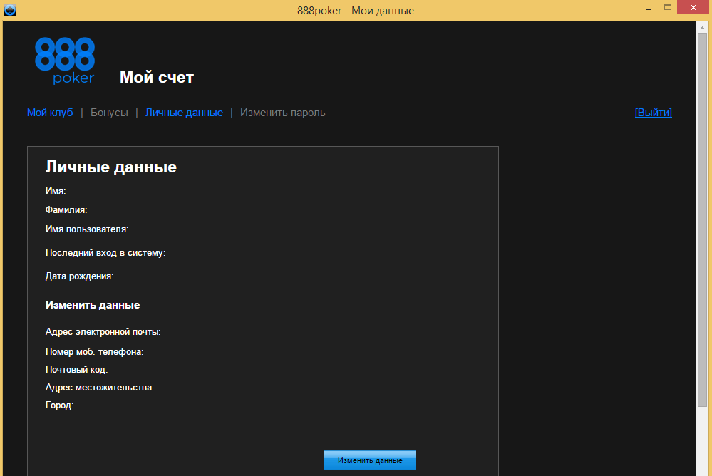Мой профиль. В этом вкладке игрок найдет всю личную информацию о себе. Здесь указан адрес электронной почты игрока, логин, пароль, страна проживания и так далее. В этом же разделе можно получить информацию о доступных турнирах и билетах на них, отыгранных бонусах и полученных баллах лояльности. В данной вкладке есть и ссылка на фирменный магазин рума.