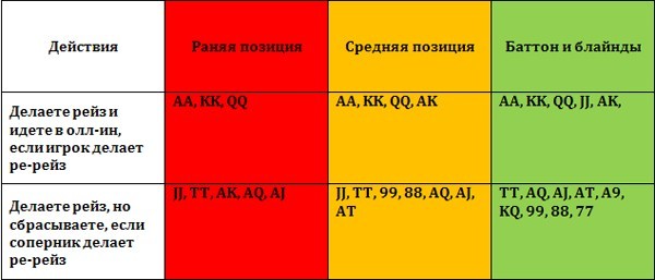 Игра на префлопе по такой стратегии сводится к принятию решений с учетом стартовых рук и позиции. Главная цель игрока – нарастить банк на флопе, играя агрессивно в партиях, когда карманные карты позволяют это сделать.