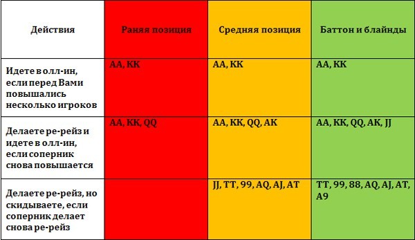 Также при использовании такой стратегии допустимо входить в торги с руками, которые перспективны для розыгрыша на постфлопе с учетом позиции.