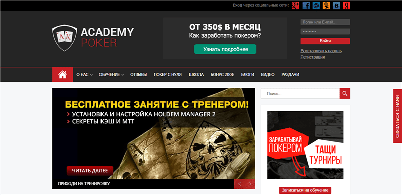 Академия покера предлагает бесплатное обучение. Пройти его может каждый желающий. Для этого достаточно зарегистрироваться на официальном сайте данной школы. После чего выполните вход в свой аккаунт, и Академия покера предстанет перед вами в другом виде. Вам будут доступны обучающие материалы. Вы получите доступ к тренировкам, видеороликам и статьям. Всего этого будет достаточно, чтобы освоить покер.