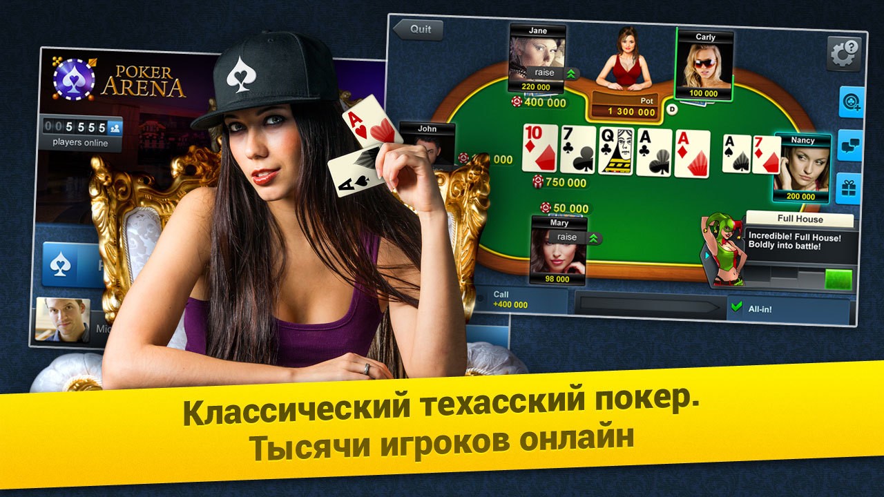 Poker Arena – качественное и увлекательное приложение для игры в покер. Оно станет отличным выбором как для новичков, так и опытных покеристов, предпочитающих вести игру на интерес. Здесь ждет качественная графика, квестовая составляющая, множество бонусов и интересных особенностей. При этом для игры потребуется создать только один аккаунт, а запускать ее сможете с портативных устройств и ПК. Советуем вам присмотреться к этому приложению, если пока не хотите вести игру на настоящие деньги.