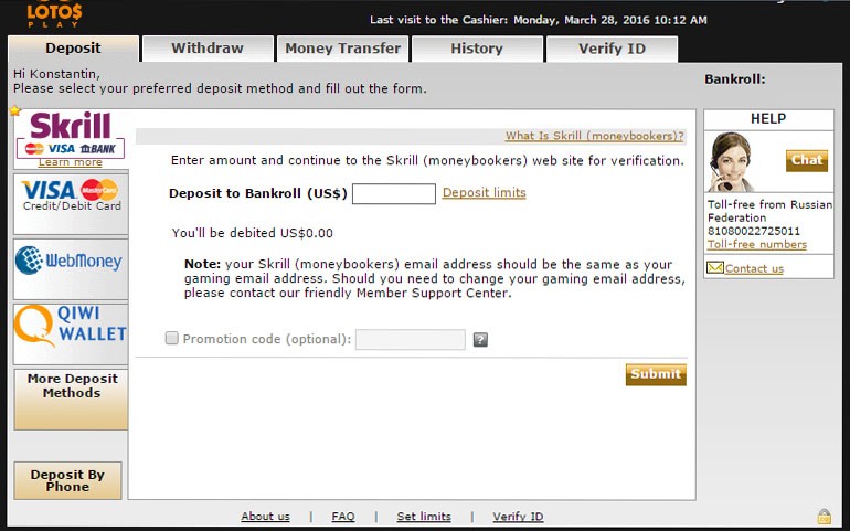 Деньги на счет аккаунта поступают в течение нескольких минут. Что касается сроков кэш-аута, то они разнятся и могут достигать недели. Чтобы не ждать долго выплаты выигрышей, следует выбирать для снятия средств систему PayPal, Neteller или ClickandBuy. В этом случае обработка заявки будет выполнена в течение 2-3 дней.