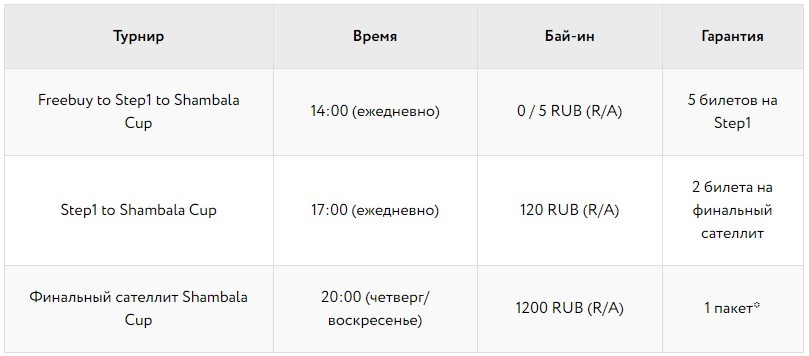 Отборочные турниры к Shambala Cup проходят в руме ежедневно по следующему расписанию: