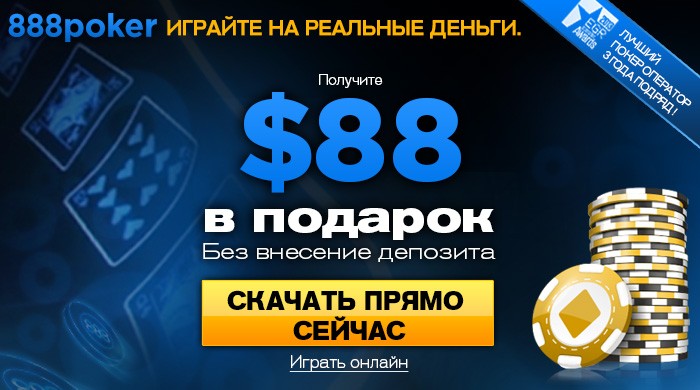 Покерный сайт 888Poker заслуживает особого внимания, поскольку здесь можно начать игру без вложений. Каждый новый зарегистрированный пользователь получает в свое распоряжение бездепозитный бонус в размере 88 долларов. Конечно же, они требуют отыгрыша. Но вместе с тем открывают перед игроком хорошие возможности освоить покер без риска своими средствами и получить при удачном исходе увесистые выигрыши.