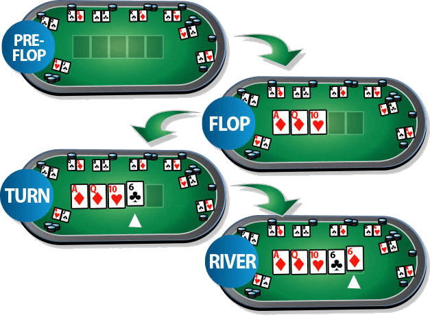 Когда первый круг торгов завершен, то начинается следующий этап игры, который носит название флоп. В ходе него происходит раздача трех общих карт. А значит, их могут использовать для составления комбинаций все участники, находящиеся за столом. Отталкиваясь от них и своей руки, покеристы приступают ко второму кругу торгов. Он проходит по аналогичной схеме, что и префлоп.