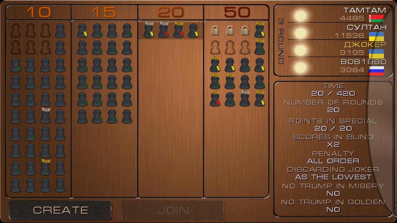 - «Золотая» - игра, в рамках которой нет необходимости делать взятки. А значит, она менее рискованная. Теперь участникам нужно просто стараться брать все возможные взятки, не беспокоясь о переборе или недоборе. В любом случае им будут начислены призовые очки.
