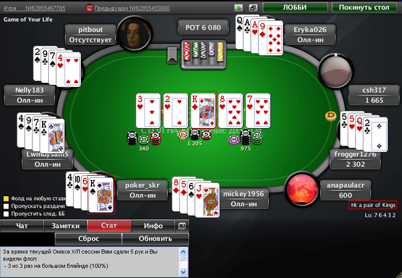 Вероятность собрать Пару составляет 1 из 2. Вот почему ее очень часто можно встретить в рамках раздач. Впрочем, многие крупные турниры покеристы выигрывают именно с таким сочетанием.