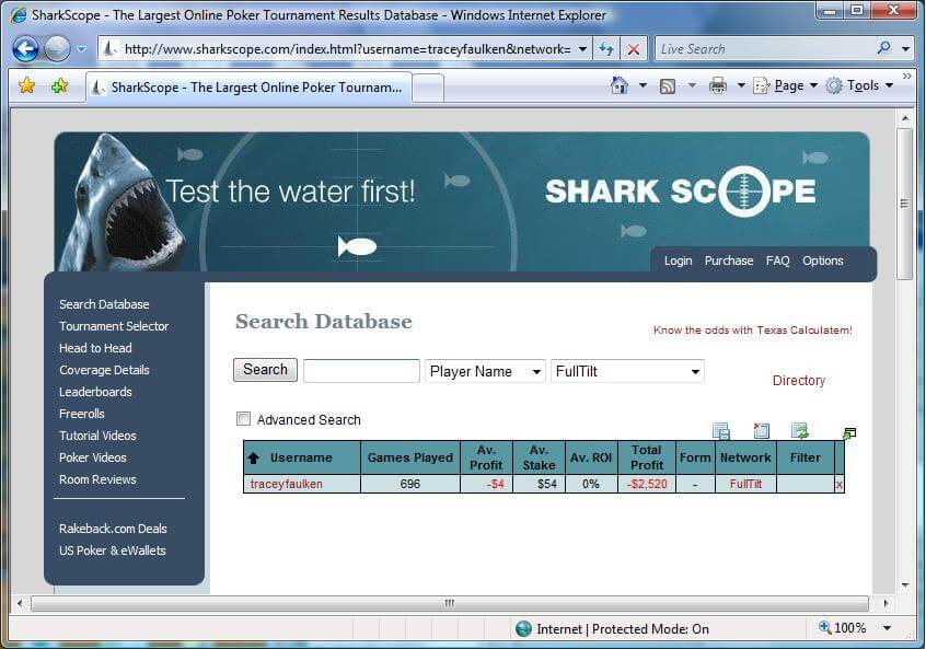 Если же вы хотите оценить на Шаркскоп свою успешность игры в турнирном покере, то тогда введите в поисковую строку свой никнейм. После чего вы сможете увидеть все необходимые данные.