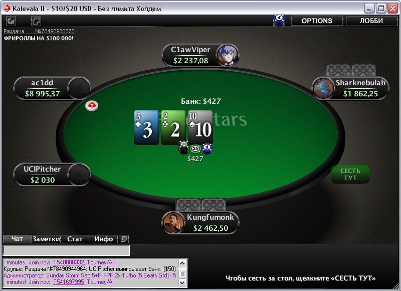 Вы сможете настраивать звук, цвет карт и столов, выбирать 3D-тему оформления, играть одновременно за несколькими столами и сортировать турниры и кэш-столы по необходимым параметрам.