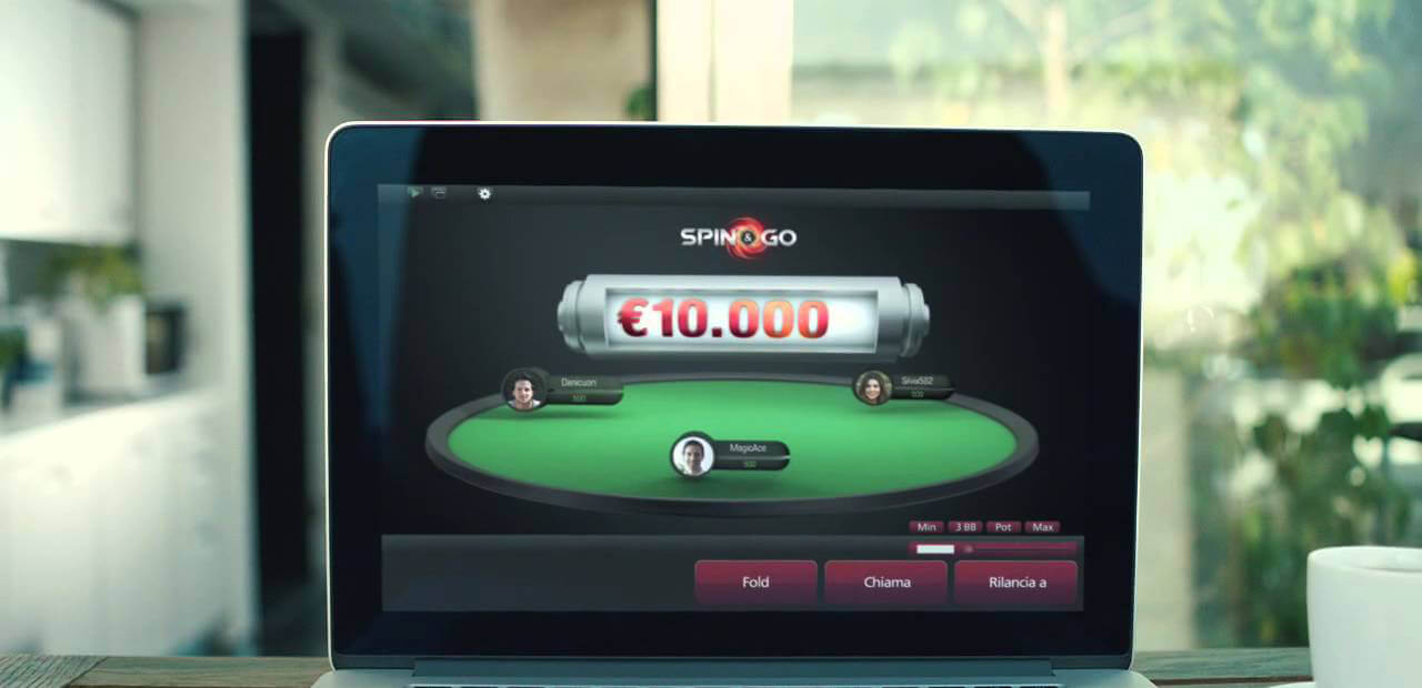 Spin&Go – гипер-турбо турниры на трех (реже на четырех) игроков. Их особенность состоит в том, что призовой фонд выбирается случайным образом и может начинаться от 2 бай-инов и достигать 10 000. Наиболее частый формат проведения такого турнира: стек в 500 фишек, блайнды возрастают каждые 3 минуты, победителю причитается весь игровой банк.