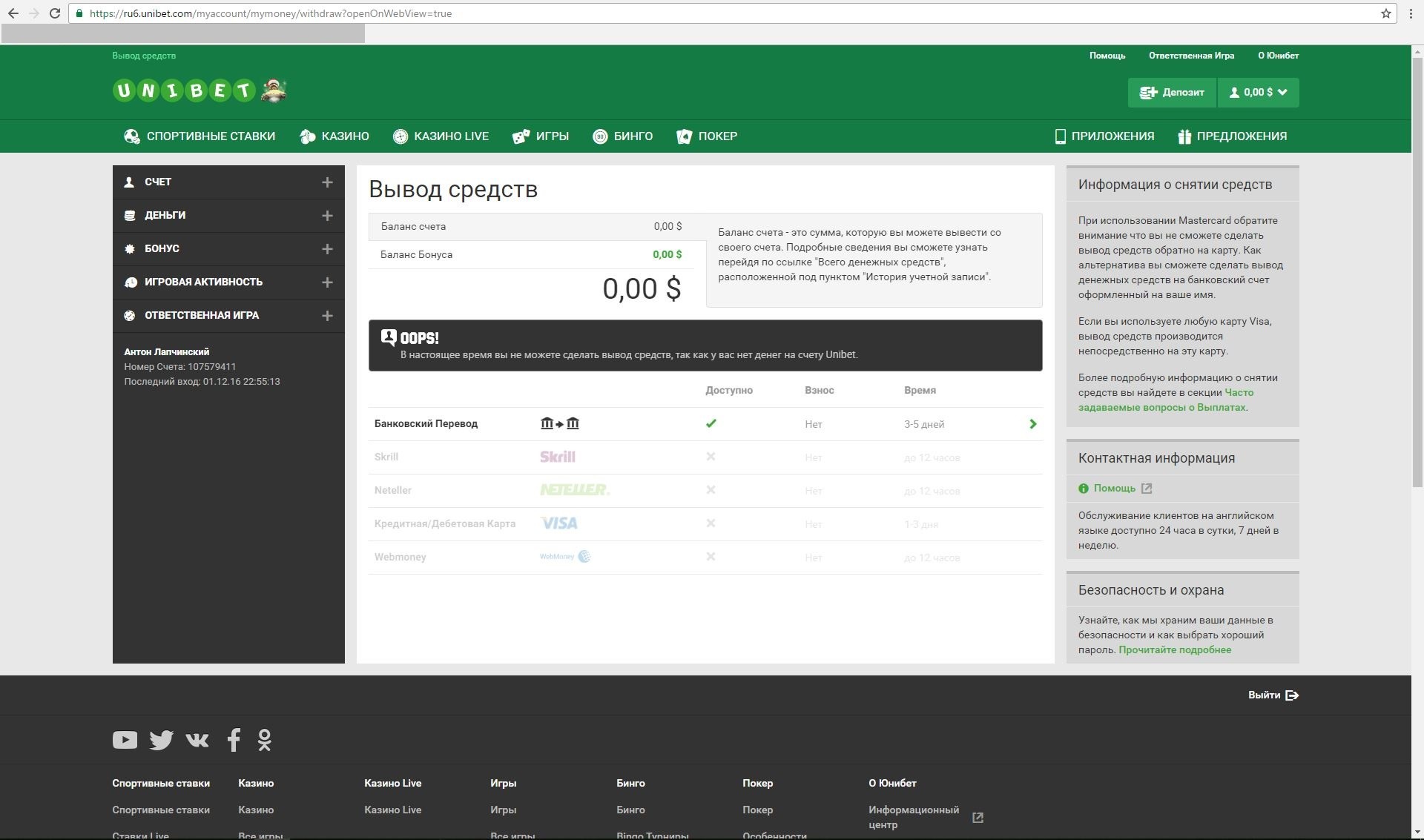 Перейдем к рассмотрению вариантов платежных систем. Сразу скажем, что в Unibet Poker отсутствуют такие привычные русскоязычным игрокам финансовые инструменты, как WebMoney, Яндекс.Деньги и ряд других. Ведь все-таки данный рум ориентирован на европейских игроков. Поэтому пополнять счет и выводить средства придется посредством банковских карт, Skrill и Neteller.