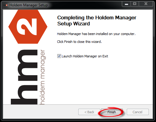 Дождитесь завершения процесса установки, а потом в открывшемся окне выберите пункт под названием Launch Holdem Manager on Exit, а потом нажмите на кнопку Finish.