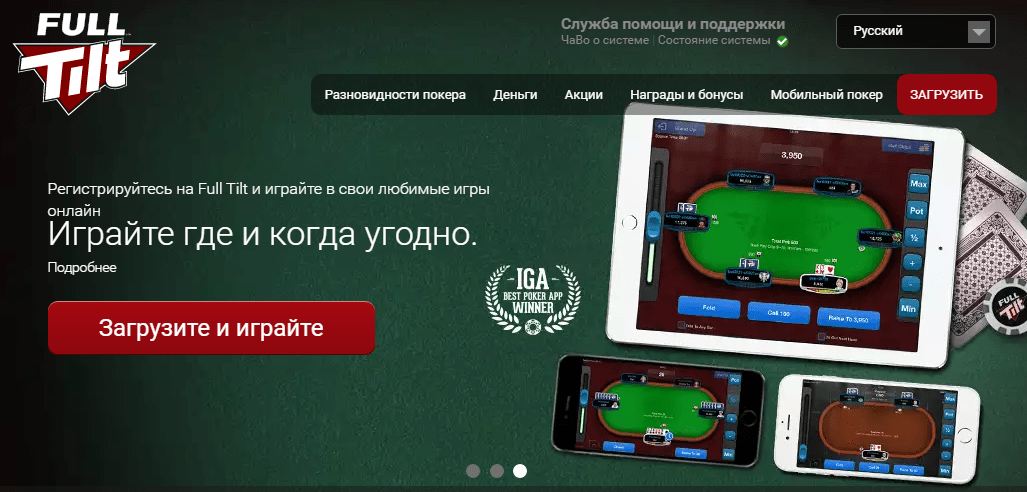 Full Tilt Poker тоже заслуживает внимания, так здесь доступны специальные столы для новичков. Чтобы они смогли вести игру на равных и играть на самых низких лимитах, избегая крупных денежных потерь в рамках неудачных карточных партий.