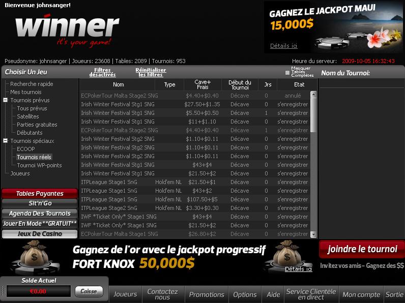 Подготовлен в Winner Poker сюрприз для ценителей SnG. В рамках таких турниров игроки могут побороться за огромный джек-пот, размер которого часто доходит до $100 000. Для тех, кто не хочет пока рисковать предлагается принимать участие во фрироллах, которые здесь тоже проводятся в огромном количестве.