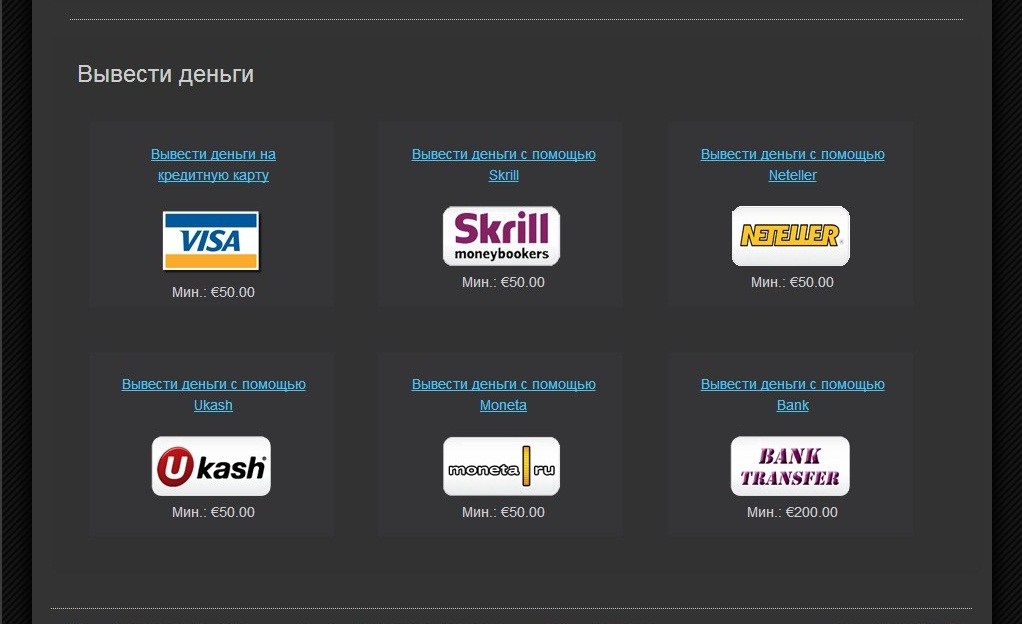 Отдельно остановимся на способах для пополнения счета и вывода средств в Winner Poker. Их здесь огромное количество, что позволит каждому без труда найти для себя подходящий финансовый инструмент. Среди них: